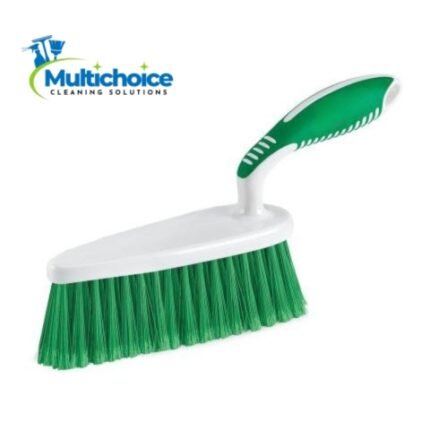 The angled broom head reaches corners and edges easily, while durable bristles collect dust and debris.